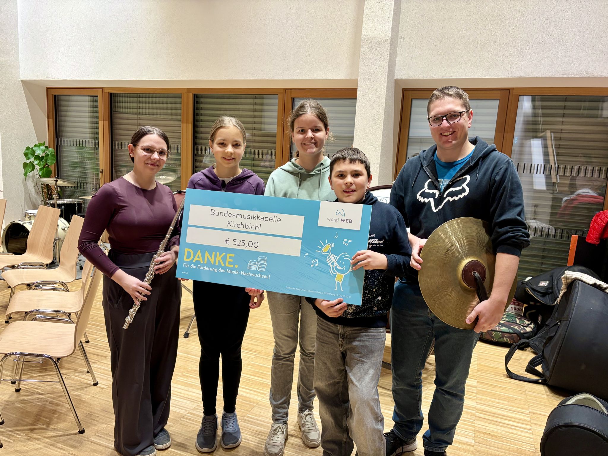 525 Euro für die Nachwuchsarbeit der BMK Kirchbichl. Foto: Stadtwerke Wörgl