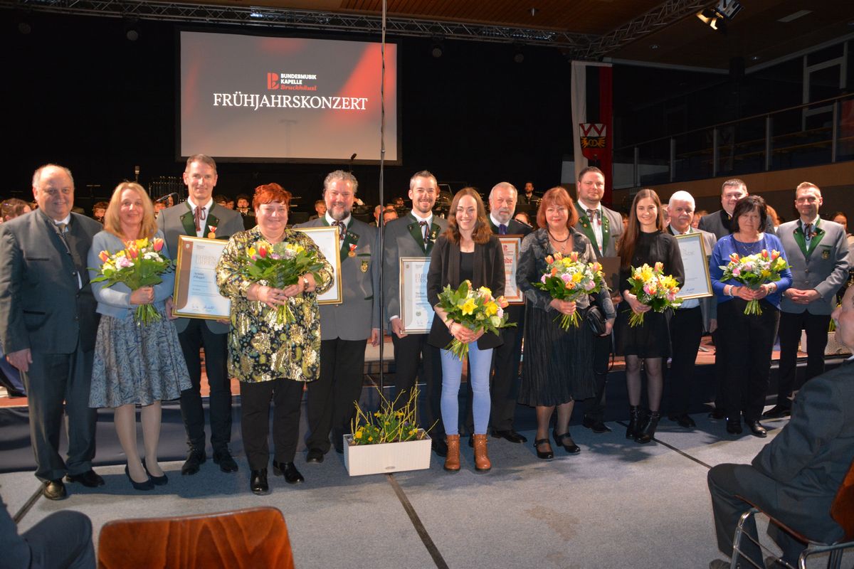 Am Freitag standen die Absolventen von Jungmusikerleistungsabzeichen im Scheinwerferlicht. Bronze erzielten Michael Mahlknecht, Christof Lindner, Korbinian Resch, Lukas Breitenlechner, Eva Werlberger, Maximilian Gruber und Mathias Bramböck, mit Silber ausgezeichnet wurden Felix Ehrenstrasser, Marcel Winkler, Fabian Winkler und Stefan Ehrenstrasser. Am Samstag erhielten Stefan Ehrenstrasser das Verdienstzeichen in Grün des Tiroler Blasmusikverbandes, Hannes Payr und Armin Pfluger für 40jährige Mitgliedschaft und Johann Thaler für 55jährige Mitgliedschaft die Verdienstmedaille in Gold des Blasmusikverbandes Tirol. Josef Schuller wurde zum unterstützenden Mitglied ernannt und Martin Gasteiger, der seit 2011 engagiert als Obmann der BMK Bruckhäusl vorsteht, erhielt die Verdienstmedaille in Silber des Österreichischen Blasmusikverbandes.