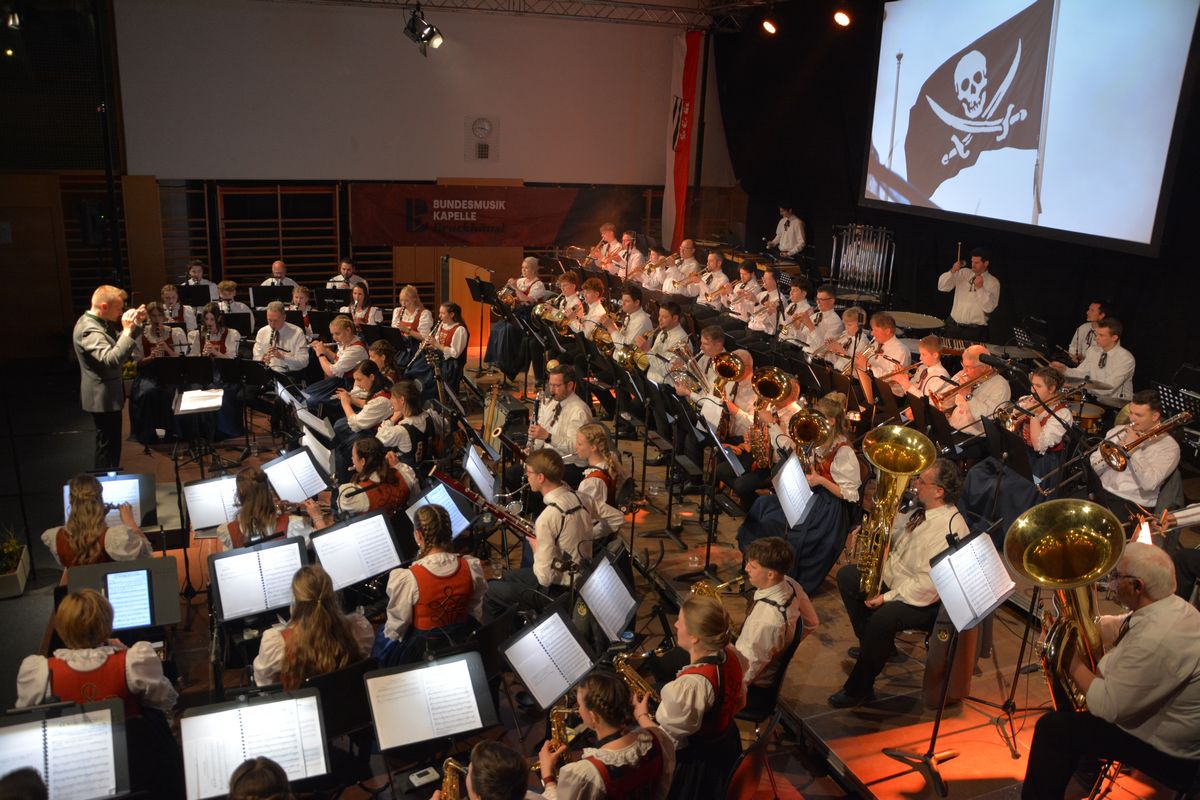 Ganz „großes Kino“ bot dann der zweite Programmteil, der mit dem feurigen Pasodoble „Andres Contrabandista“ von  Oscar Navarro die spanische Sonne aufgehen ließ, bevor die BMK Bruckhäusl sich mit der Filmmusik „At World´s End“ von Hans Zimmer in musikalische Piraten der Karibik verwandelte und zu neuen musikalischen Horizonten segelte. Beeindruckend dann auch das Rock-Medley „Queen!“ mit den unverkennbaren Melodien von Freddy Mercury, der seine Auftritte nie als Live-Wiedergabe von Musik, sondern als Theaterevent verstand. Zum Queen-Sound trug auch Bruckhäusls Volksschuldirektor Gerhard Krigovsky an E-Gitarre und E-Bass bei. Mystisch endete das offizielle Konzertprogramm 2026 mit „Two Steps from Hell“ von Thomas Bergersen – einer sinfonischen Dichtung mit exakten Schlagwerk-Einsätzen in buchstäblichem Höllentempo und elfengleichen Mädchenstimmen in luftigen Höhen. Als mehrstimmigen Chor forderte Hannes Ploner sein Blasorchester auch bei den Zugaben – mit dem Marsch „Unser Land, unsere Heimat“ von Michael Geisler und dem Jodler „Der Verliebte“ von Lorenz Maierhofer.