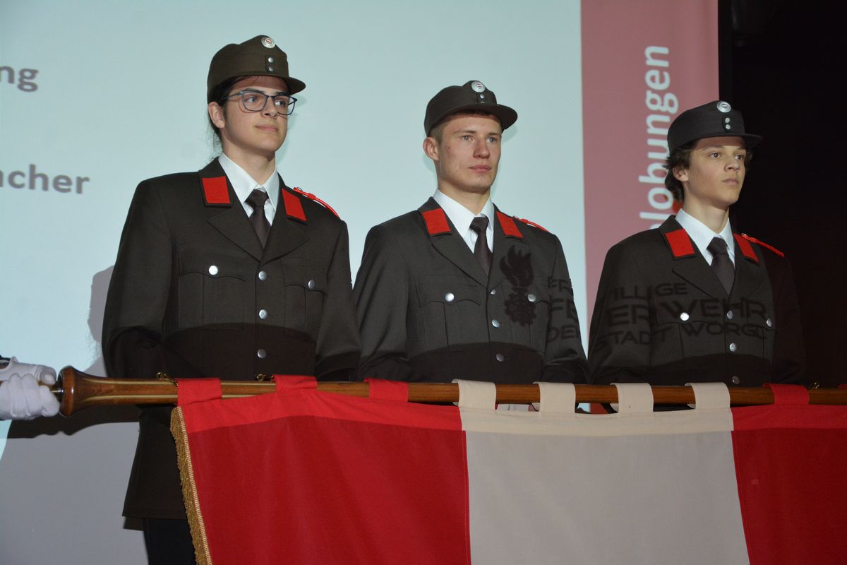 Im Rahmen der Jahreshauptversammlung wurden Tine Gregorc, Manuel Sprung und Lukas Steinbacher als Feuerwehrmänner angelobt und Mario Ellmerer, Fabio Gwiggner und Florian Steindl zu Hauptfeuerwehrmännern befördert.