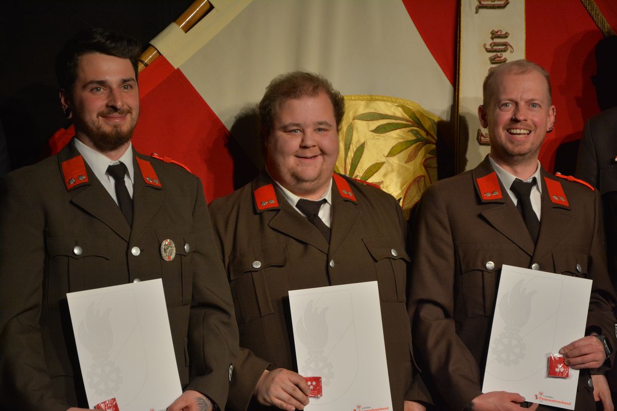 Zu Hauptfeuerwehrmännern befördert: Florian Steindl, Fabio Gwiggner und Mario Ellmerer. Foto: Spielbichler