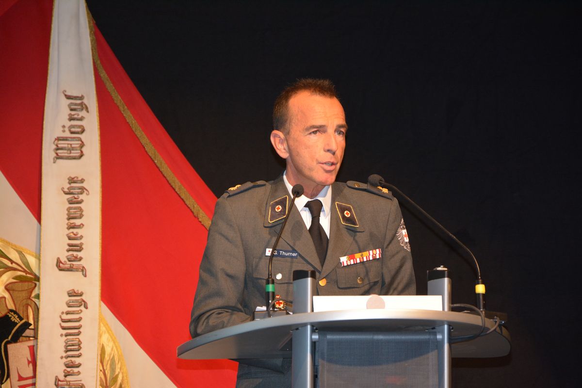 Gemeindeeinsatzleiter und Rot-Kreuz-Ortsstellenleiter Gerhard Thurner dankte für die gute Zusammenarbeit und Einsatzbereitschaft. Foto: Spielbichler