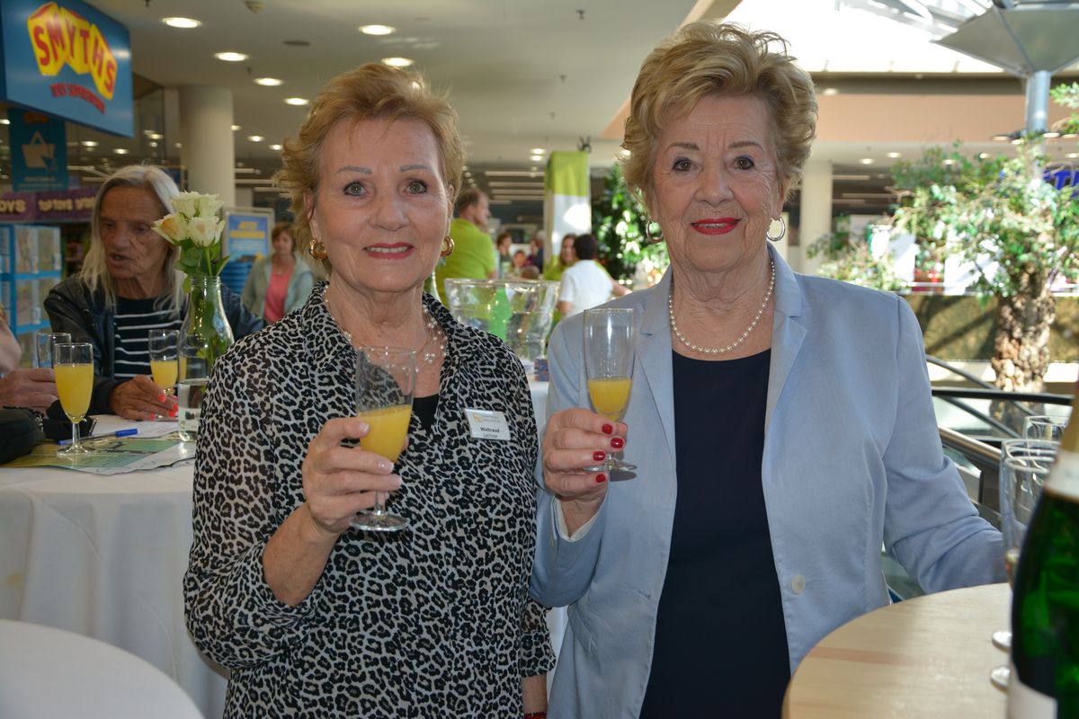 Waltraud Lechner und Erika Eder vom Wörgler Seniorenrat waren als „Bardamen“ beim Sektempfang am Wörgler Seniorentag im Einsatz. Foto: Veronika Spielbichler