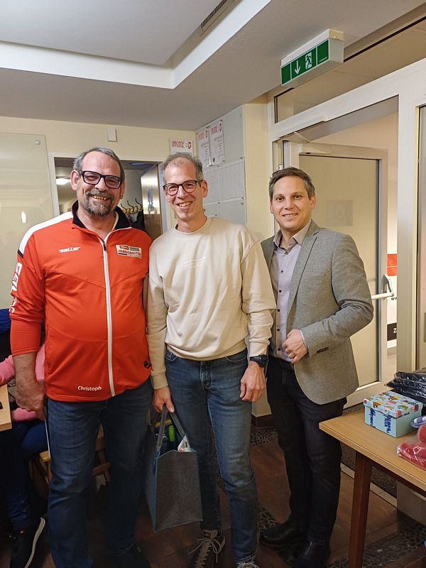 Sektionsleiter Christoph Plattner (li.) und LAbg. Christian Kovacevic (re.) gratulieren dem Wörgler Stadtmeister 2025 Thomas Unterladstätter (Bildmitte). Foto: ESV Wörgl
