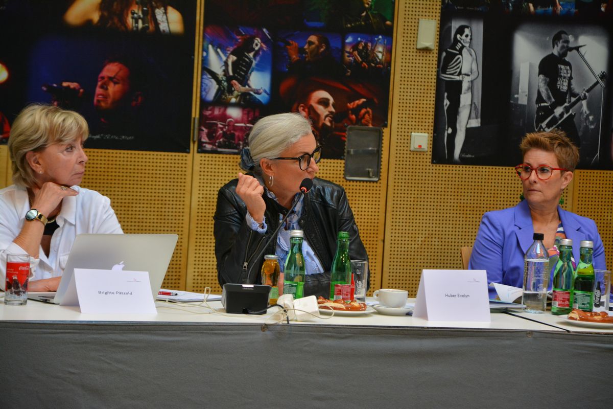 Ersatzgemeinderätinnen am 1.10.2025 – v.l. MFG Birgit Pätzold, Grüne Evelyn Huber und Catarina Becherstorfer. Evelyn Huber lehnte eine Abstimmung „mit dem heutigen Infostand als unverantwortlich ab“.