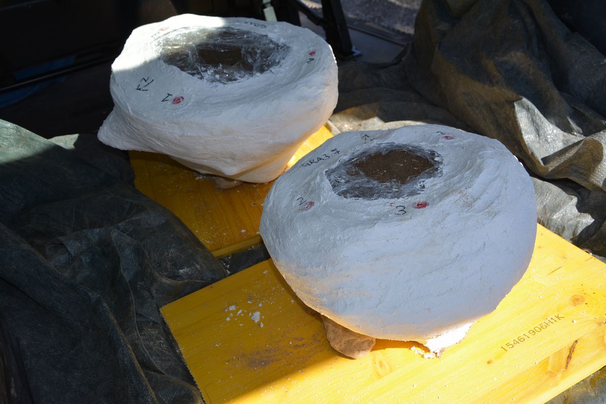 Zwei der im Gipsblock geborgenen Urnen aus der Bronzezeit.