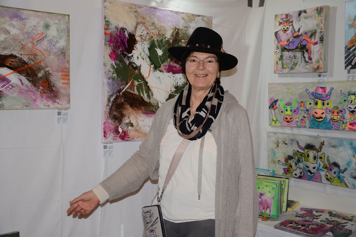 Cäcilia Schlapper aus Walchsee brachte eigens für die Kunstmesse kreierte Bilder ebenso mit wie ihre „Kuh-Bilder“.