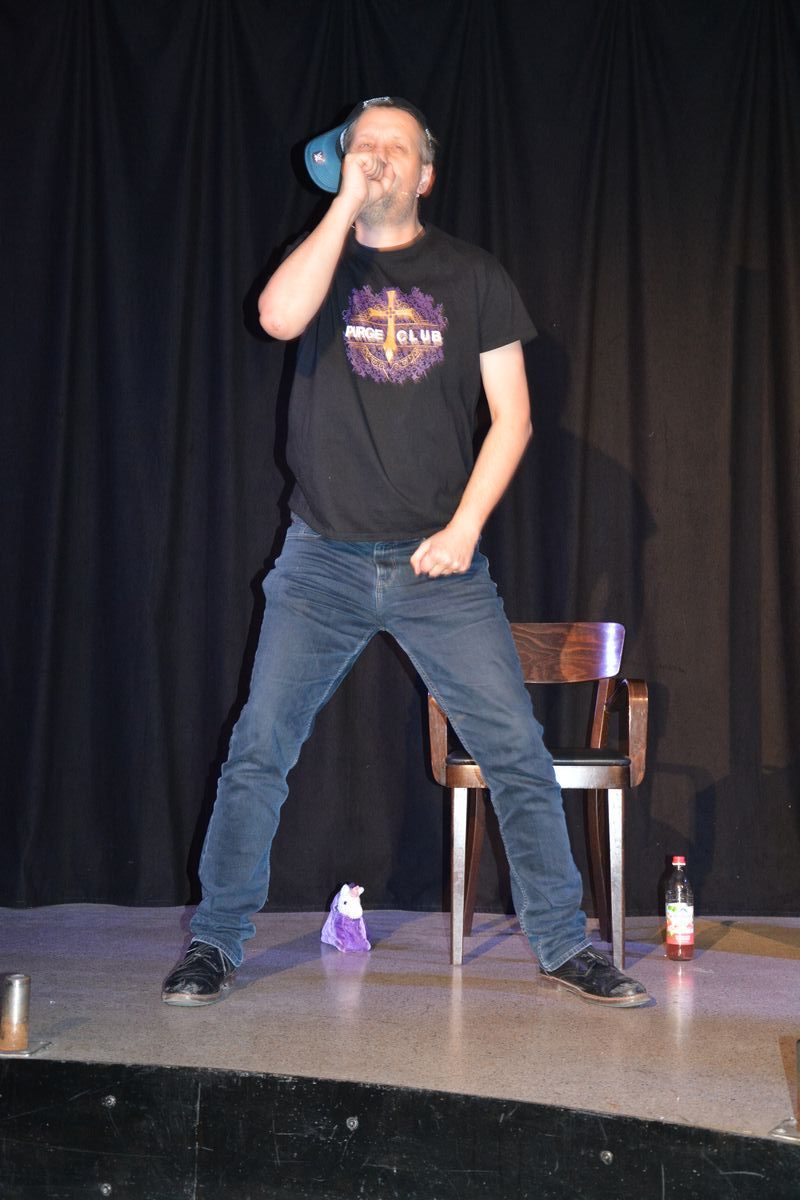 Powert sich auf der Bühne aus: Jürgen Heiss beim LaLeLu-Rap.