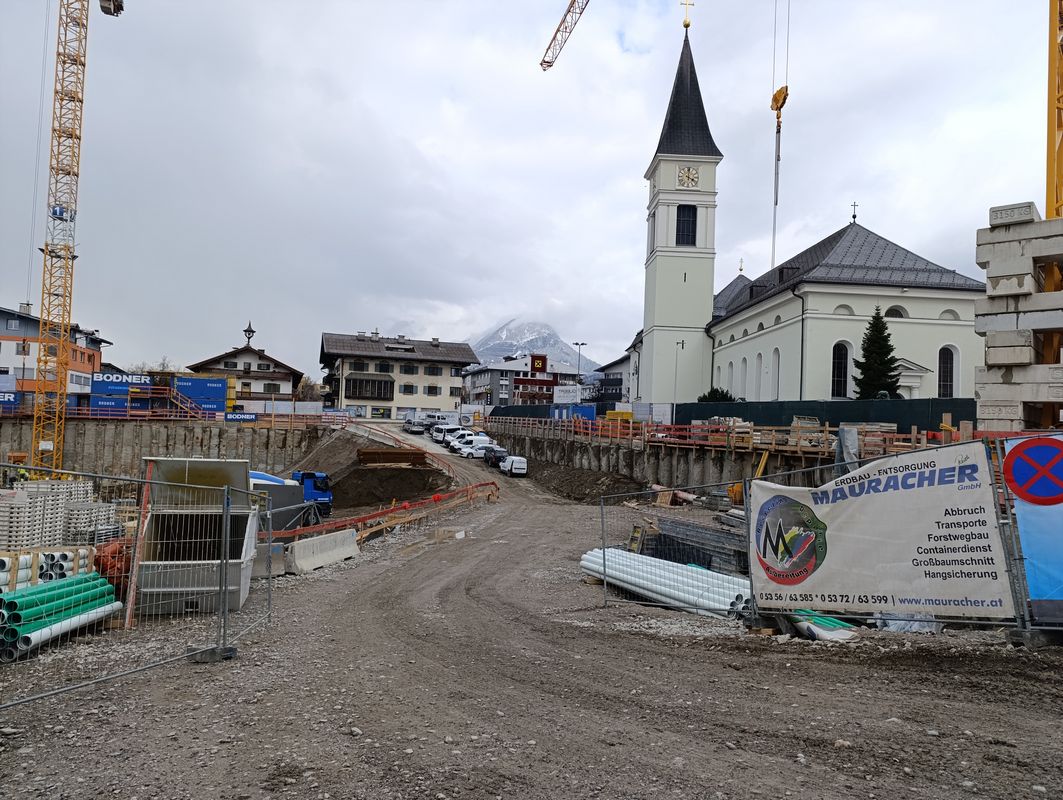 Wörgls Zentrumsbaustelle verursachte mit dem Aushub für die doppelstöckige Tiefgarage und Technikräume im Untergrund ein entsprechendes Ausmaß an Erdbewegungen. Der Aushub landete auf einer neuen Aushubdeponie am Riederberg – auf der Riederwies westlich der stillgelegten Faulgasdeponie und der Aushubdeponie der Strabag.